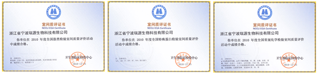 眾所周知,衛(wèi)生部室間質(zhì)量評(píng)價(jià)(External Quality Assessment,簡(jiǎn)稱EQA)是臨床實(shí)驗(yàn)室全面質(zhì)量管理的重要組成部分,也是實(shí)驗(yàn)室認(rèn)可的重要依據(jù),現(xiàn)不少三甲醫(yī)院也把此做為質(zhì)量檢查的必須項(xiàng)目。我司通過(guò)加強(qiáng)管理、提高專業(yè)技術(shù)人員的素質(zhì),不斷地改進(jìn)檢驗(yàn)方法和更新檢測(cè)儀器,終以優(yōu)異成績(jī)獲得了室間質(zhì)評(píng)(EQA)證書。證明瑞源生物在相關(guān)生化試劑產(chǎn)品質(zhì)量管理中會(huì)始終堅(jiān)持以嚴(yán)謹(jǐn)?shù)墓ぷ鲬B(tài)度,堅(jiān)持以產(chǎn)品品質(zhì)至上的企業(yè)理念,為客戶提供更優(yōu)質(zhì)的產(chǎn)品、更完善的服務(wù)。