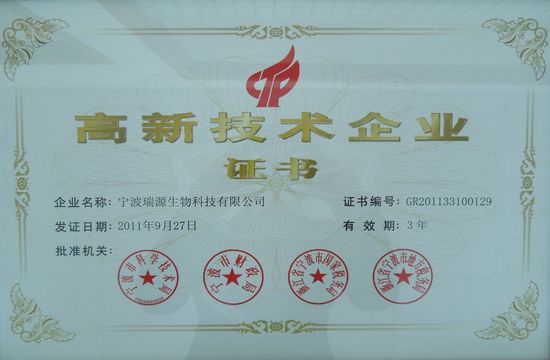 瑞源生物被認定為寧波市高新技術企業(yè)