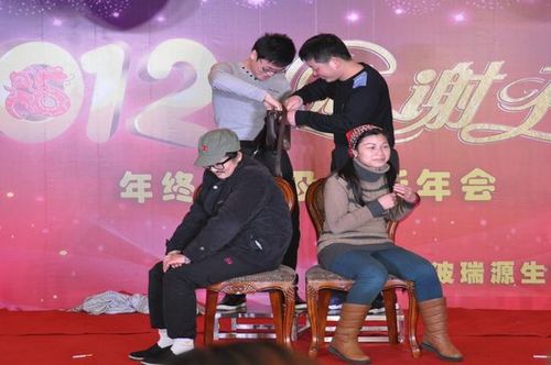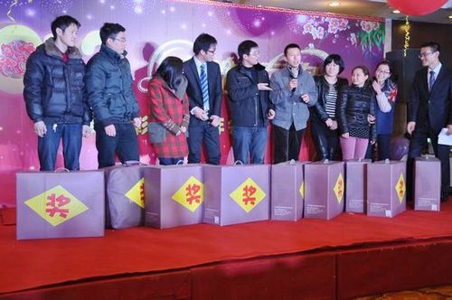 致辭過后,晚會節(jié)目正式的開始:整個晚會由四部分組成,優(yōu)秀員工評選、節(jié)目表演,游戲互動和抽獎環(huán)節(jié)。每個節(jié)目都是由員工利用上班的空余時間精心編排,有充滿東北地域風味的二人轉、歡快多姿的廣場舞、惟妙惟肖的啞劇、青春活力的櫻花舞,歌曲聯(lián)唱等。年底的忙碌并未給大家的節(jié)目質量減分,那一顰一眸都展露出大家對這次晚會的用心。最后,經(jīng)過“大眾評審”的投票決定,由配置組帶來的啞劇《雕塑下的約會》獲得了本次晚會的最高票數(shù),東北二人轉和商務部帶來的《櫻花舞》分別獲得了第二名和第三名。